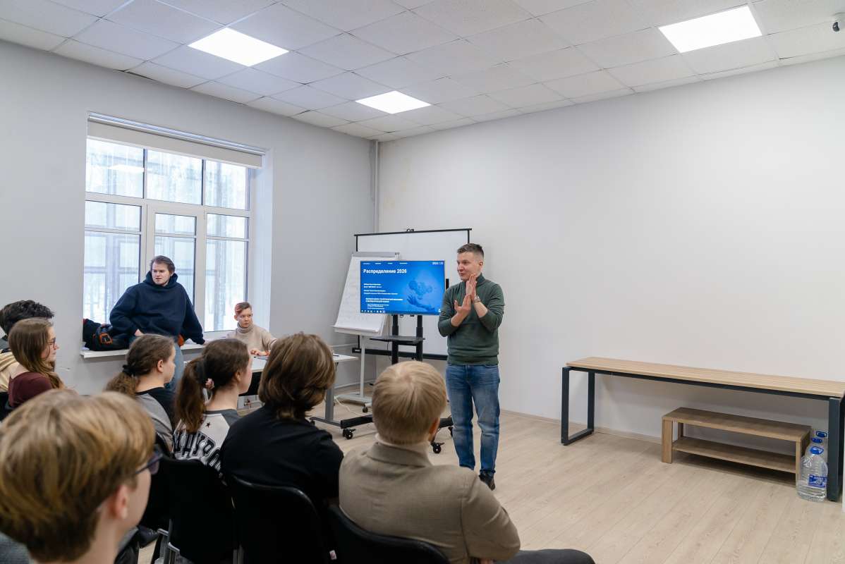 Андрей Долгирев, директор Центра молодежных траекторий «Башня Политех», открыл встречу и напомнил студентам о важности хороших отношений с заказчиками и руководителями проектов. Он также подчеркнул, что нужно строго соблюдать сроки сдачи проектов и зачетов — это основа успешной учебы.
